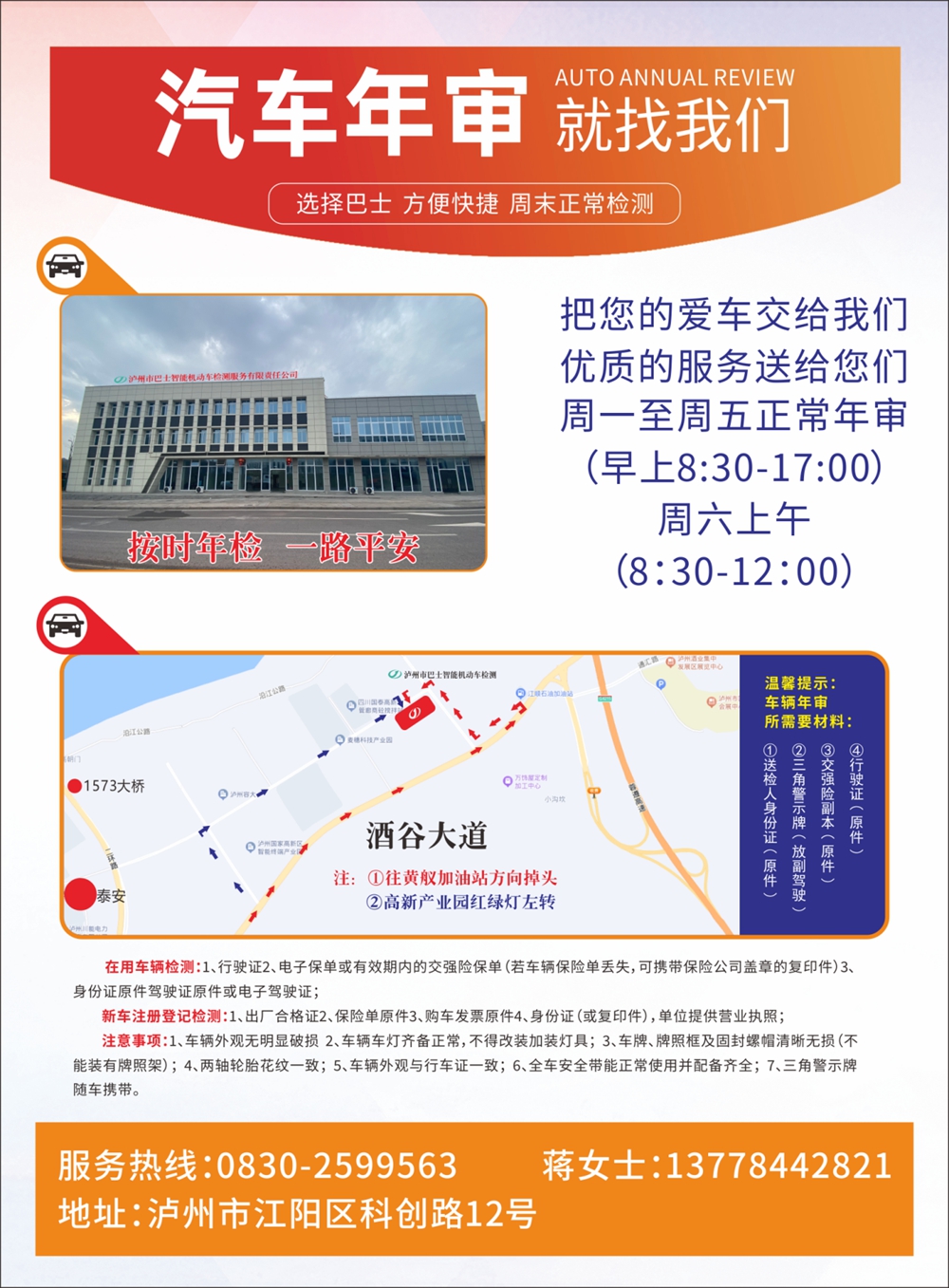 瀘州市巴士智能機動車檢測服務有限責任公司占地面積地20余畝,是瀘州市公交集團全資子公司,位于瀘州市江陽區(qū)科創(chuàng)路12號(高新區(qū)內)。檢測場站服務項目齊全、設備先進、管理規(guī)范、實力雄厚,檢測人員優(yōu)秀,技術力量精湛。本公司堅持“公正公平、科學準確、以人為本、高效服務”的宗旨,一切為客戶著想,全面為客戶提供規(guī)范檢測、誠信服務,為受檢車輛提供可靠的檢測數(shù)據(jù),為瀘州市機動車安全運行提供支撐和保障。